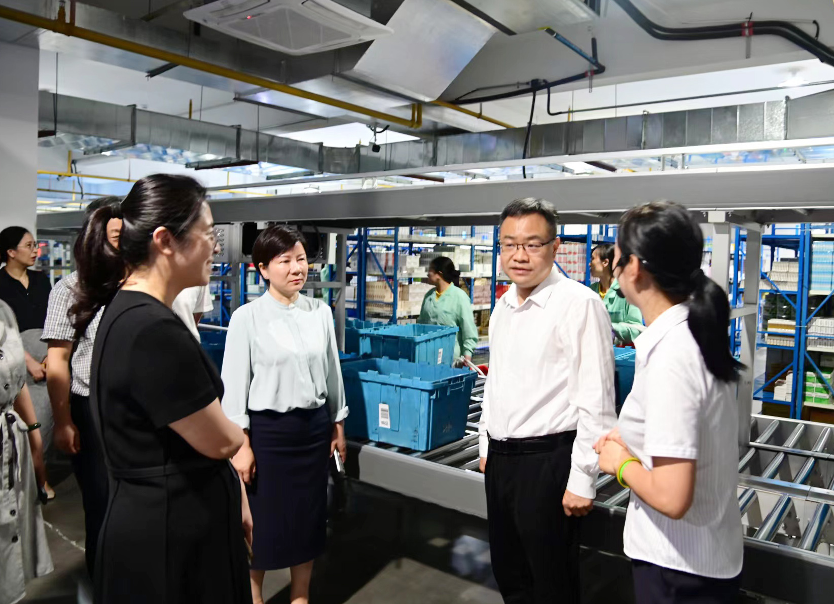 在国药控股襄阳有限公司,熊享涛走进库房,详细了解企业WMS物流管理系统和TMS运输管理系统运行、冷藏冷冻药品储存运输、麻精药品安全管理等情况,叮嘱企业加强特殊药品安全管理,严防流弊事件。在天济大药房连锁有限公司,熊享涛参观了仓储WCS传输分拣系统操作流程,详细了解执业药师配备、处方药销售、“门诊报销”品种标识管理等情况。熊享涛对两家药品经营企业在疫情期间担负医用防疫物资储存保供、服务全市新冠疫情防控工作作出的贡献给予充分肯定。